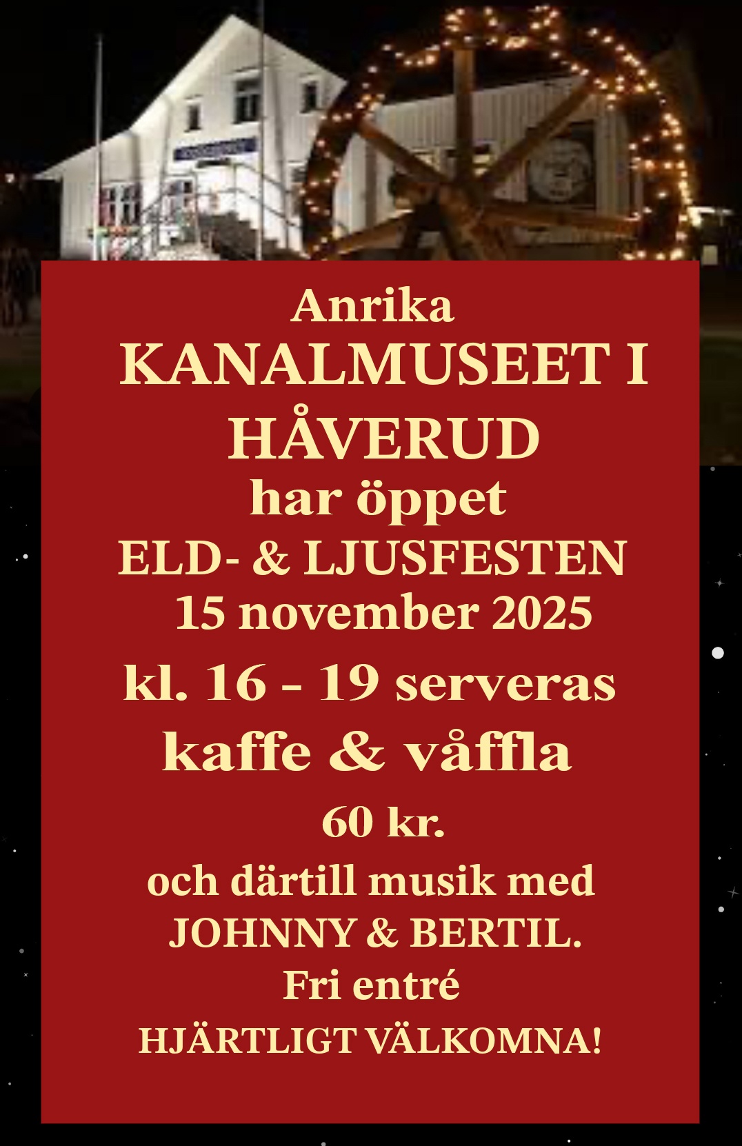 Här kommer ett urval av olika evenemang som kommer att äga rum på Kanalmuseet eller i Håverud under 2024. Logga gärna in på vår Facebooksida för aktuella händelser.